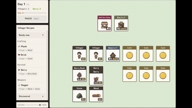 Prototype build: a real-time survival card game where you stack, craft, and survive 12 day/night cycles.